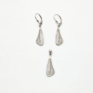 Ezüst áttört mintás lógós fülbevaló medál garnitúra